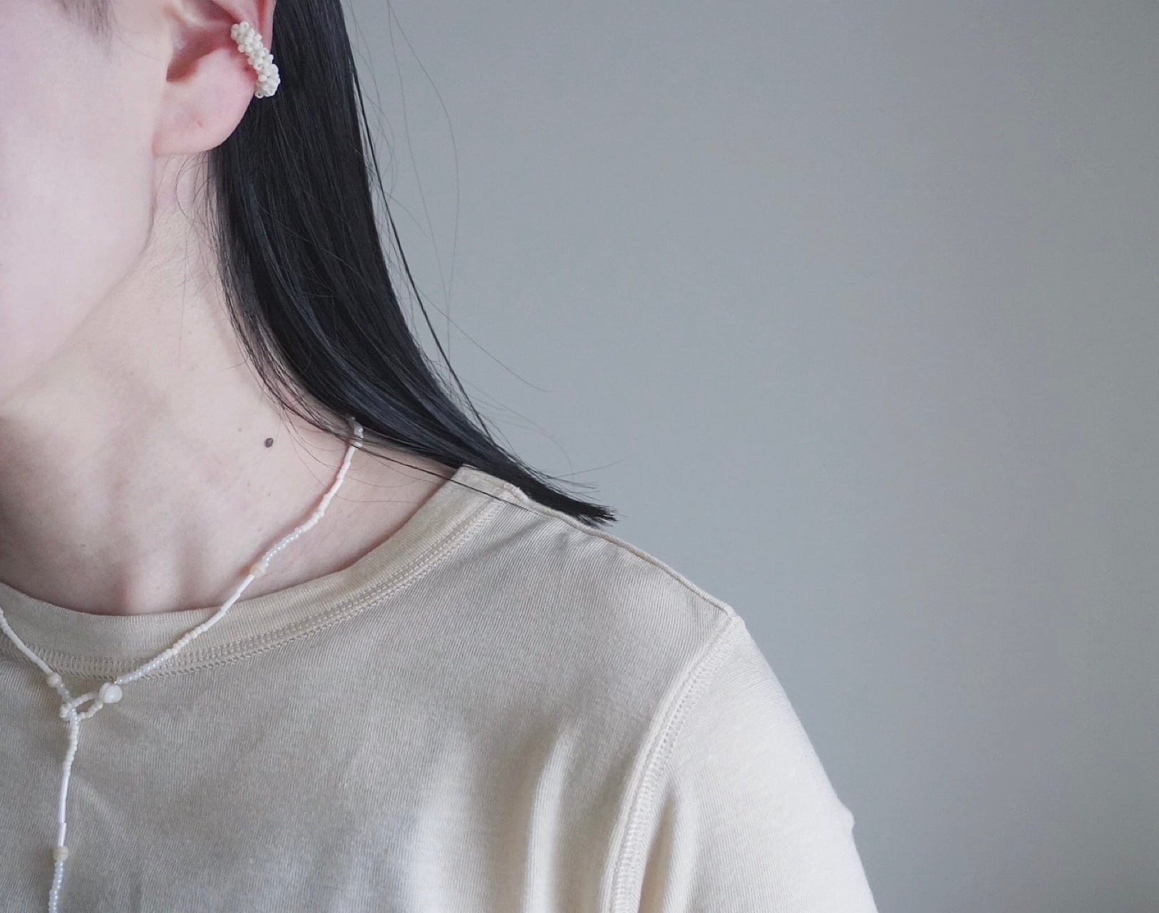ネックレスと同じビーズを使用して作ったイヤカフです。