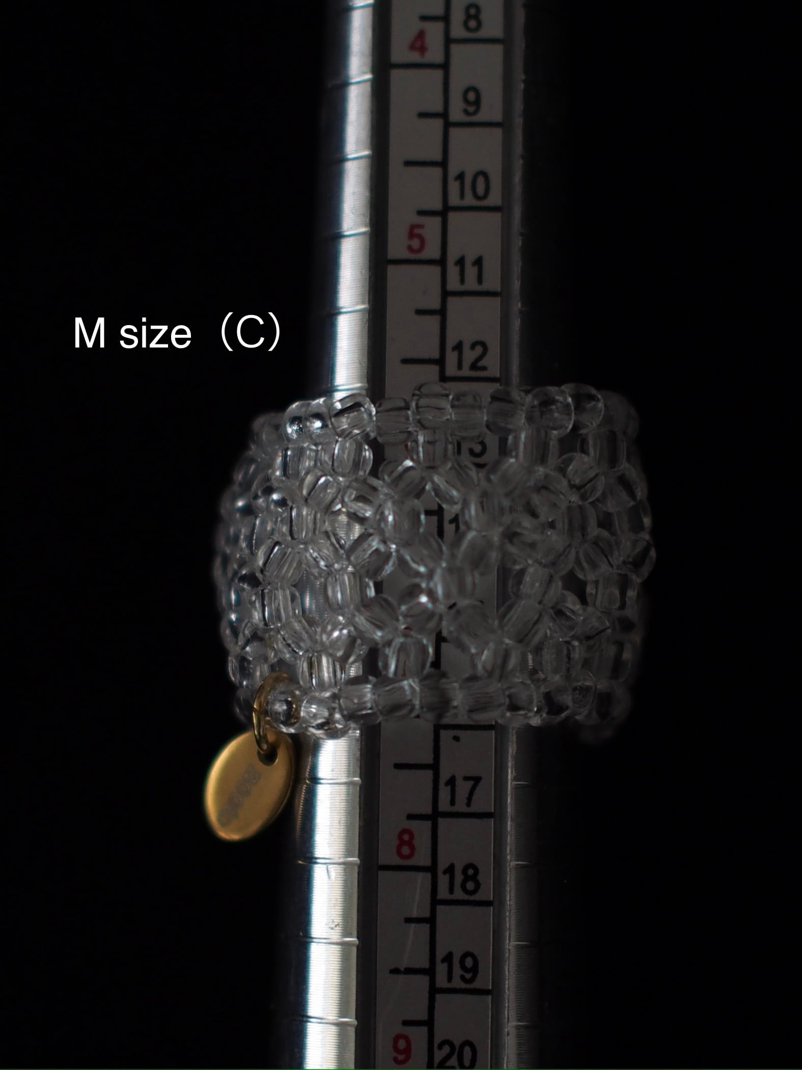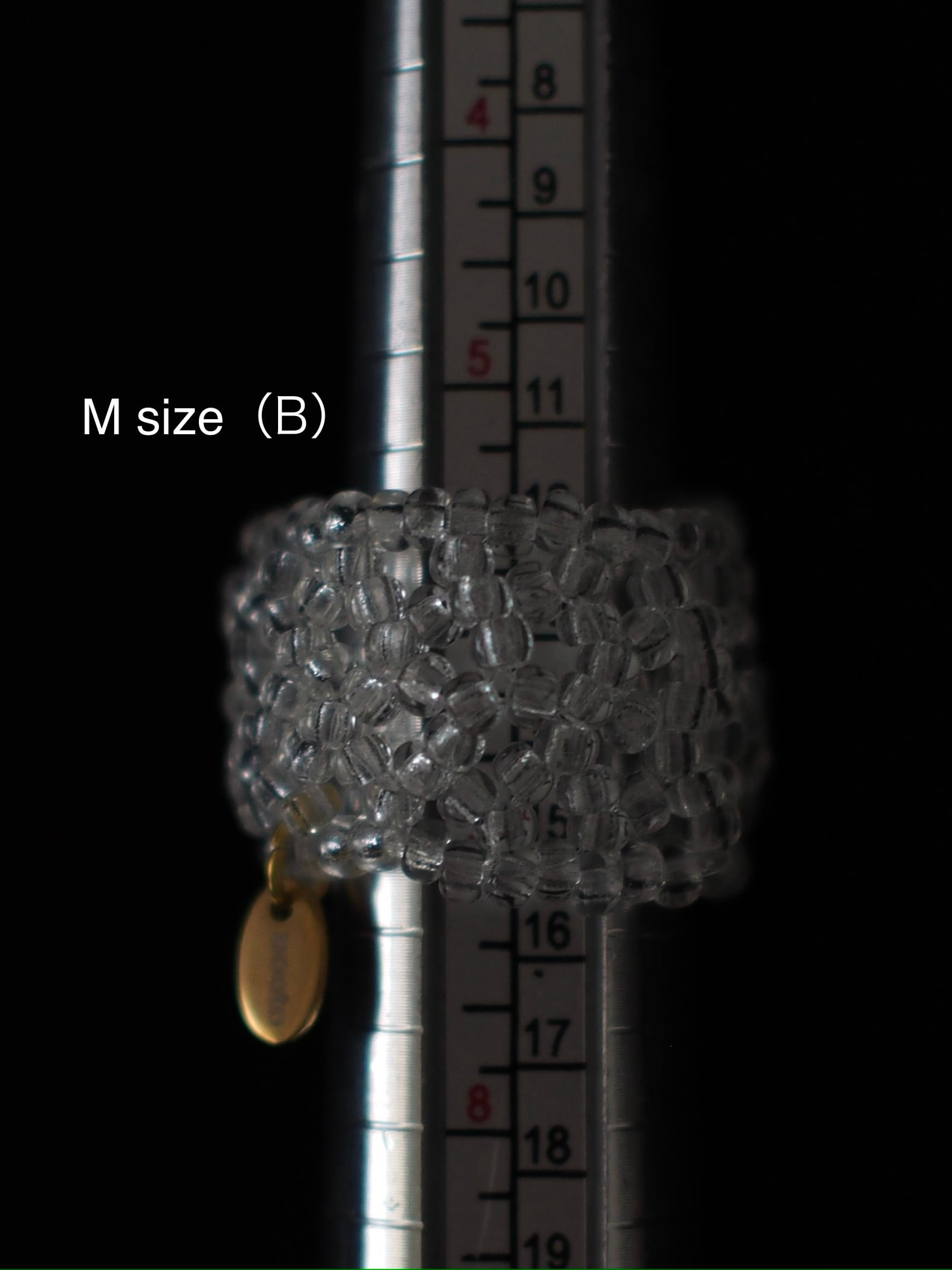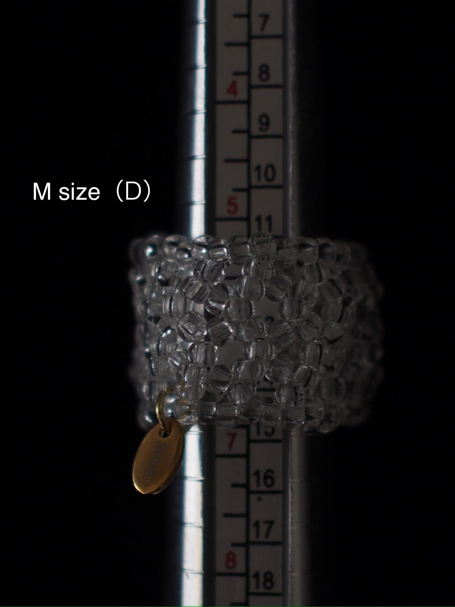 ガラスビーズを編み込んだリング。