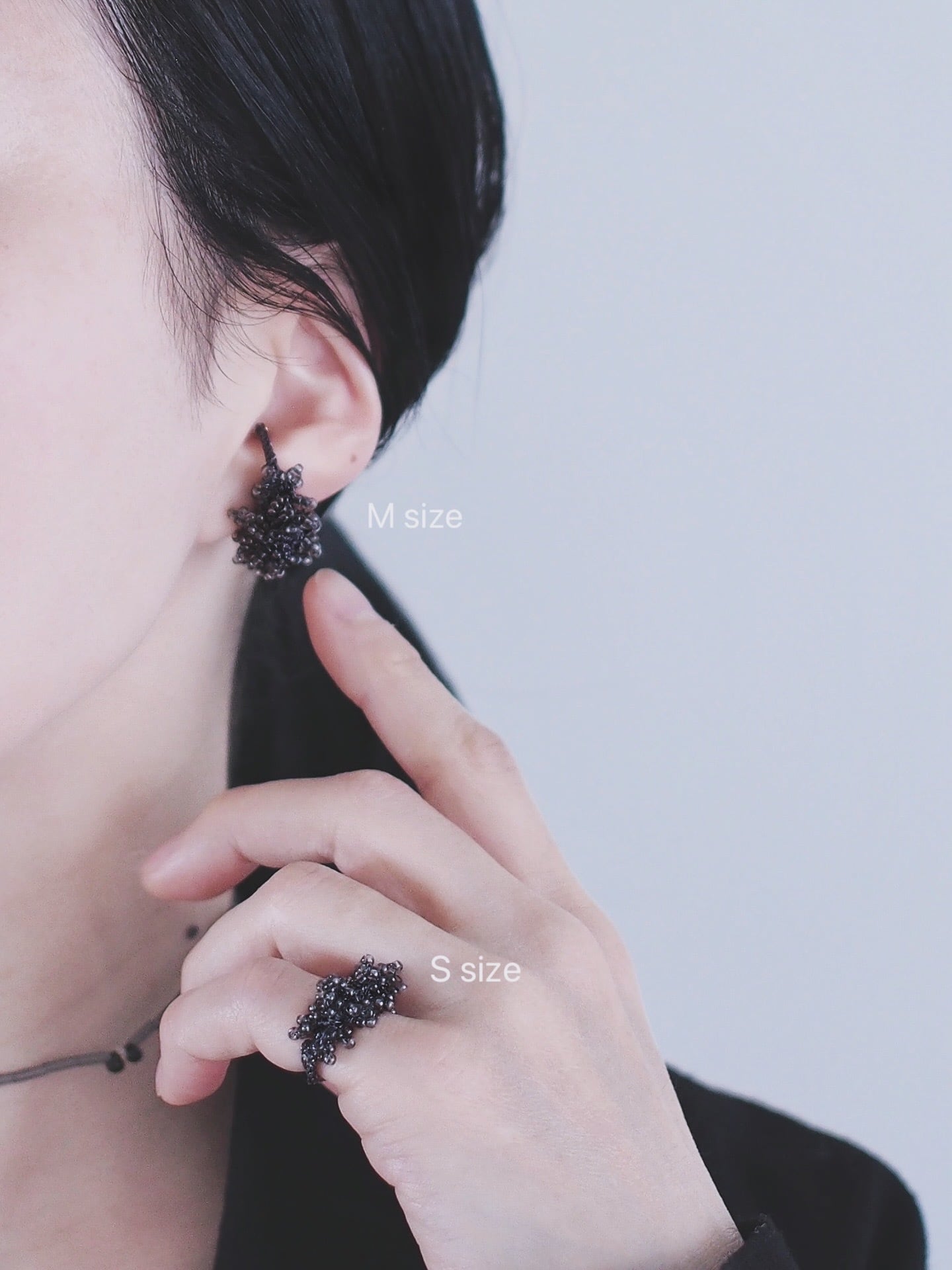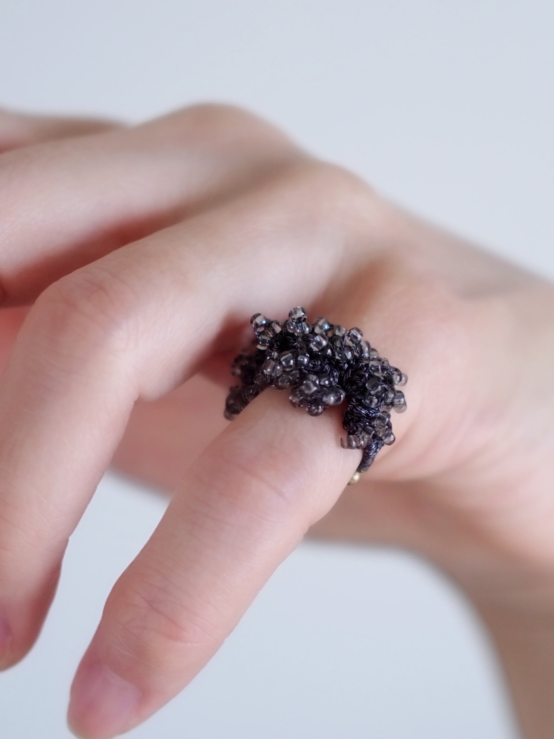 ガラスビーズを編み込んだイヤカフ兼リング。