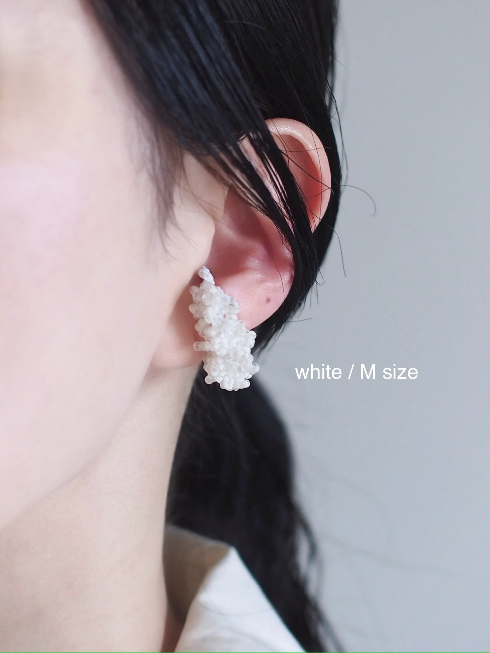 こちらは片耳での販売ですが、両耳に付けていただいてもボリューム感が出て